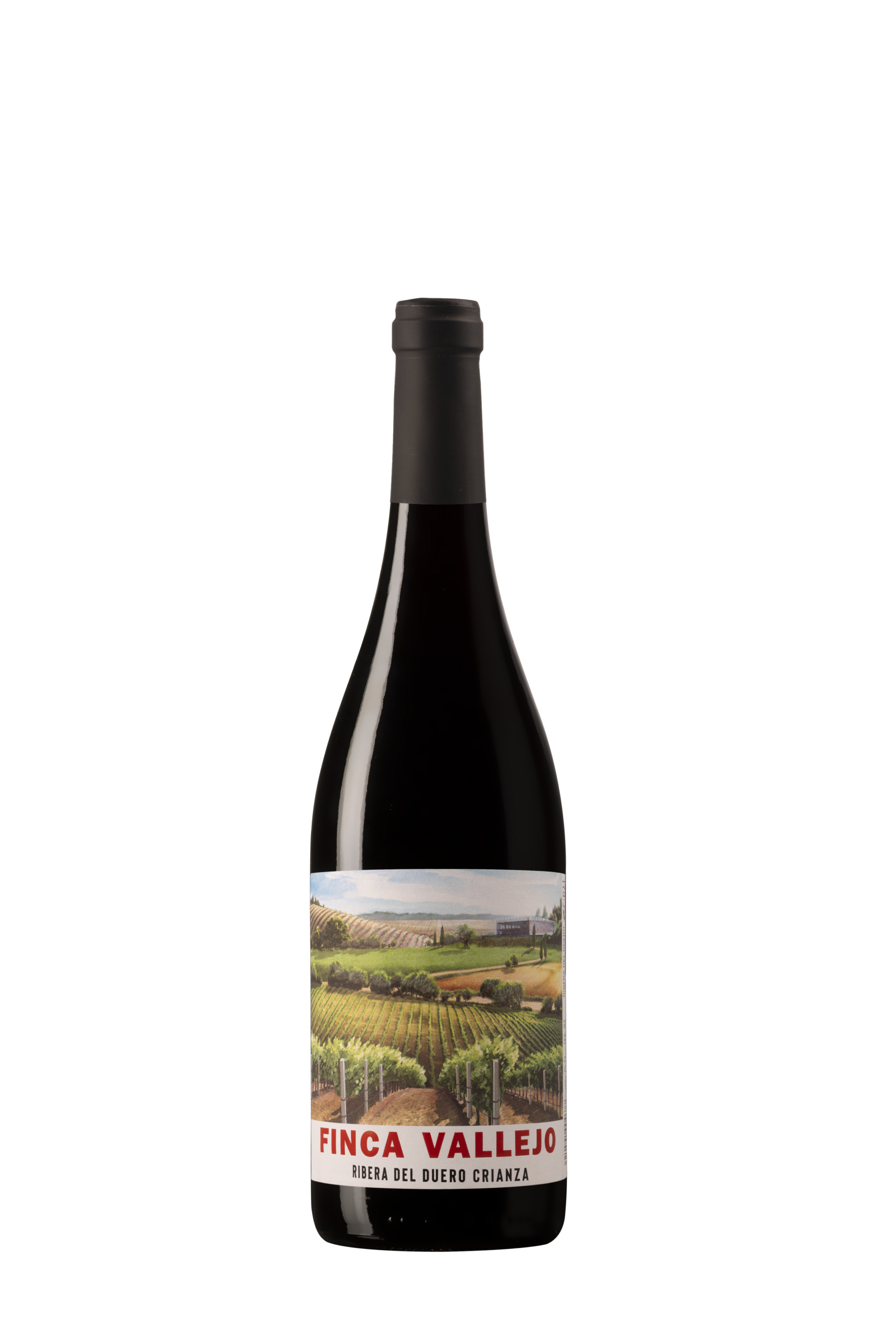 Finca Vallejo Crianza se realiza con uvas procedentes de viñedos seleccionados situados a unos 800 m de altitud en suelos arcillo-calcáreos y francos arenosos, situados en la localidad de Villalba de Duero, Burgos.